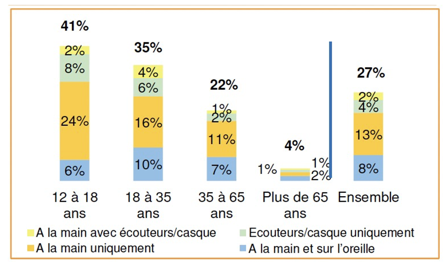 On constate que les piétons les plus nombreux qui utilisent ce type de distracteurs appartiennent aux classes d’âge les plus jeunes : 41% pour les 12-18 ans et 35% pour les 19-35 ans. Ces pourcentages sont considérables et expliquent en partie l’origine des collisions des piétons avec surtout les véhicules à moteur, mais aussi les cyclistes.