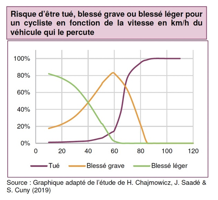 Le risque pour le cycliste dépend de la vitesse du véhicule qui le percute